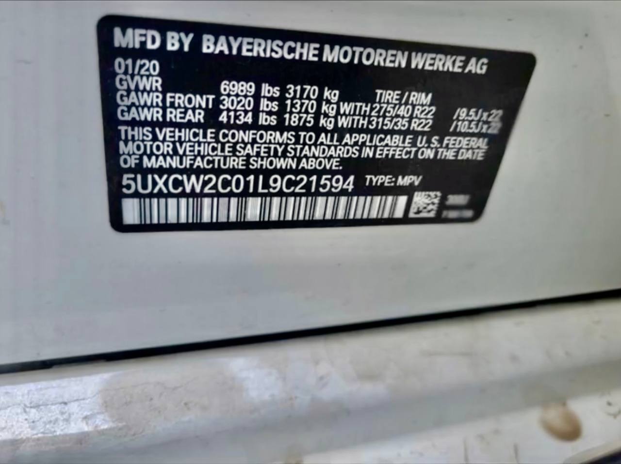 • Vin: 5UXCW2C01L9C21594